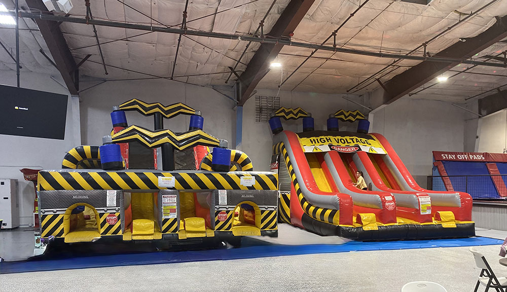 PURCHASE TICKETS PricingSlide again and again on our giant inflatable slides or challenge your friends to a race in our obstacle course! At 18 feet high, our mega inflatables are a sure crowd-pleaser!